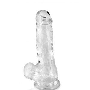Dildo realístico realizado en PVC con ventosa para colocarlo sobre una superficie lisa.