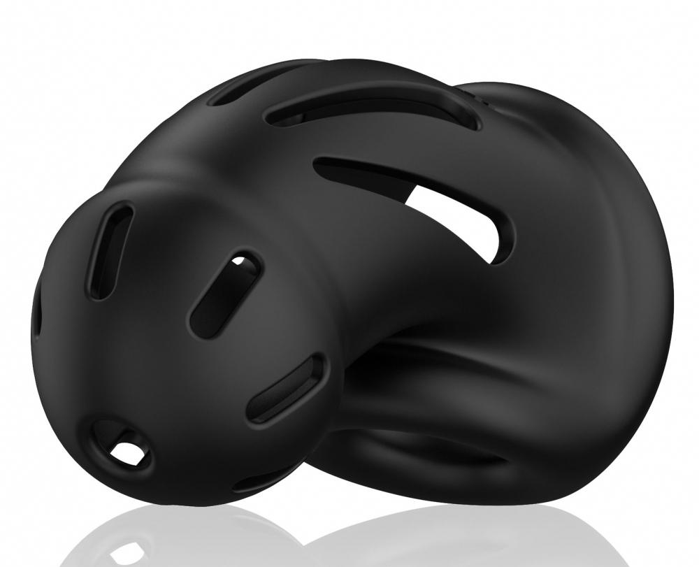 Jaula de castidad con una longitud interior de 9,6 cm y una anchura interior de 3,5 cm.Material de silicona suave.Sujeta a la altura del pene y por encima de la bursa.