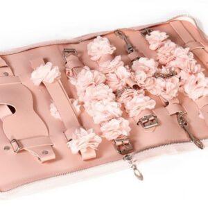 Este Kit Sm en imitación se compone de 7 accesorios que permiten emocionantes juegos traviesos.Está diseñado con:Muñecas y tobillosun collar con correaUn accesorio cruzado para sujetar las esposasuna máscaraun remo.Con la bolsa de almacenamiento.Los accesorios tienen flores de tela en la superficie.