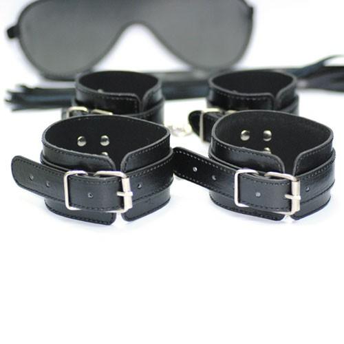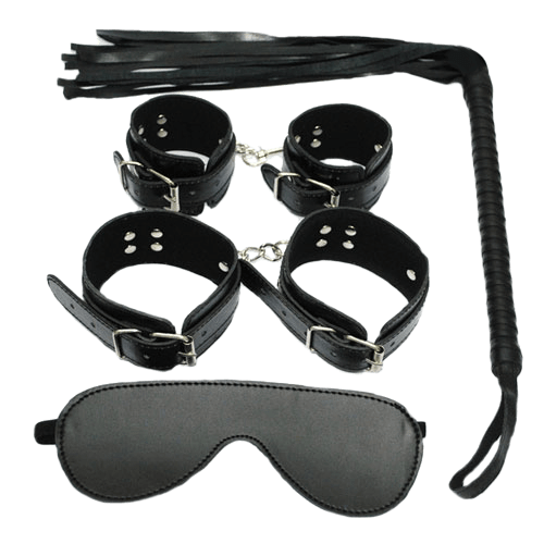 ¡Encuentra un completo kit de presentación que se desglosa en cuatro accesorios muy útiles! Un par de esposas, un par de esposas para los tobillos, una venda para los ojos y un látigo. Un montón de diversión para usted y su pareja. ¡Un kit práctico para empezar a presentar!