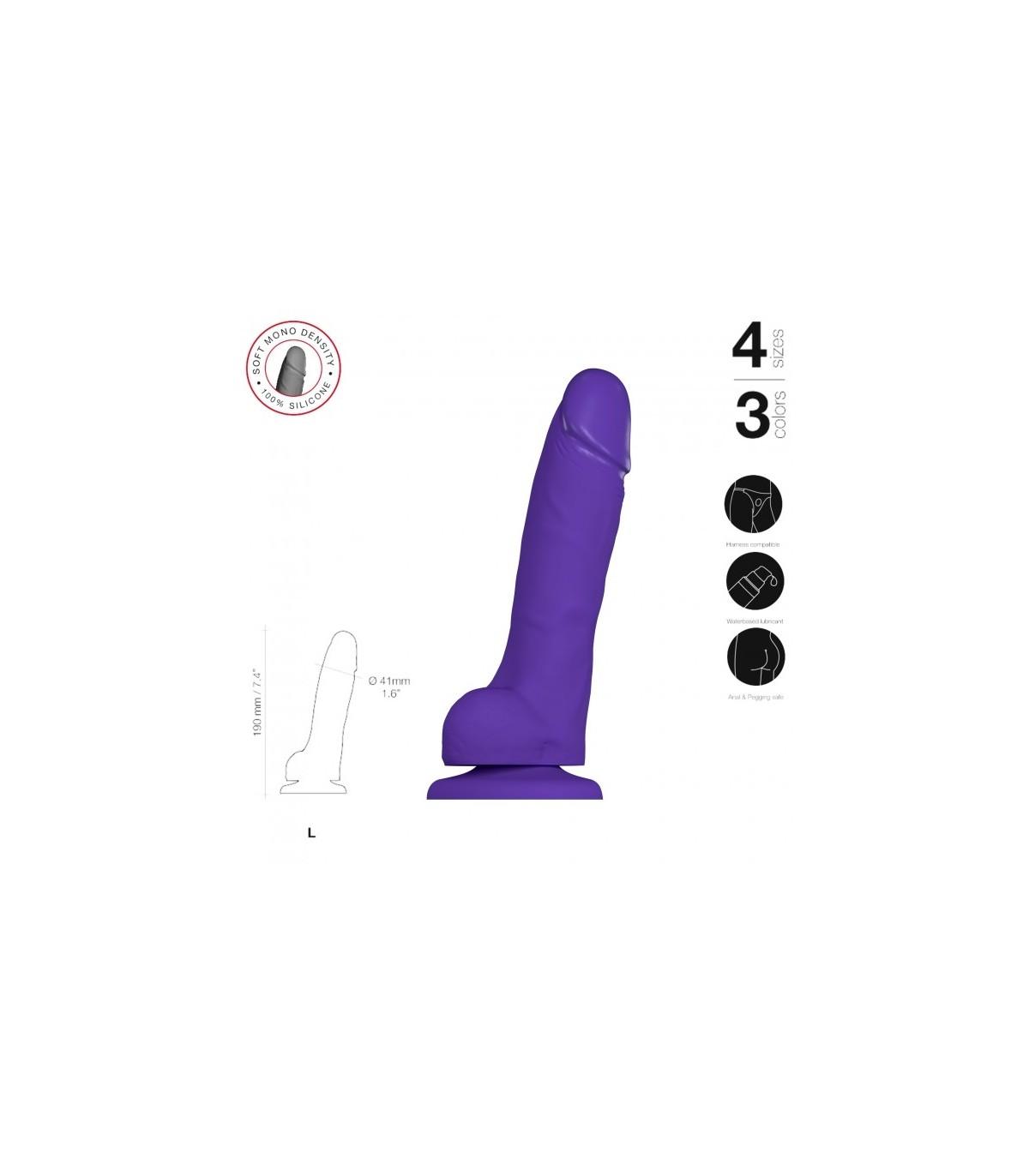 Dildo realístico con testículos y ventosa con estrías a lo largo de él. Es apto para colocar sobre un arnés. Muy flexible.